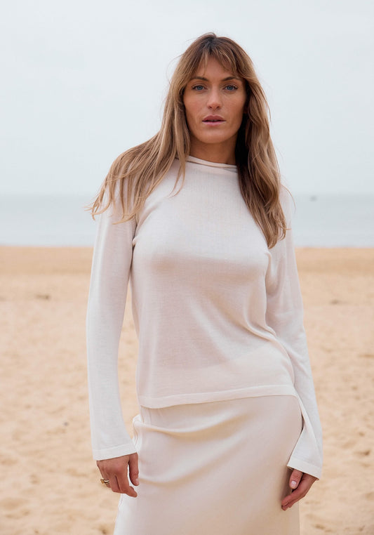 Long Sleeve Silk & Cashmere Boat Neck Top