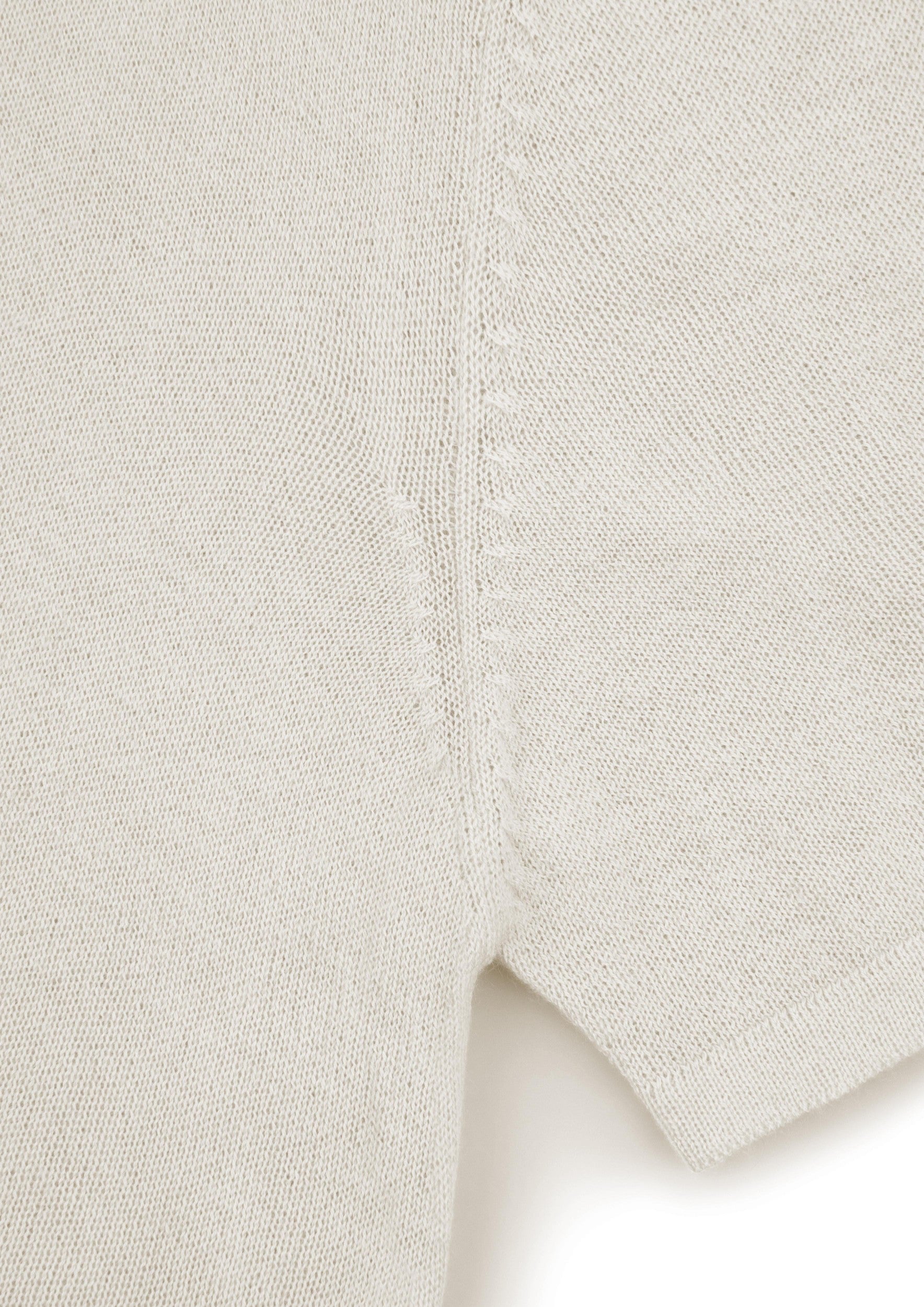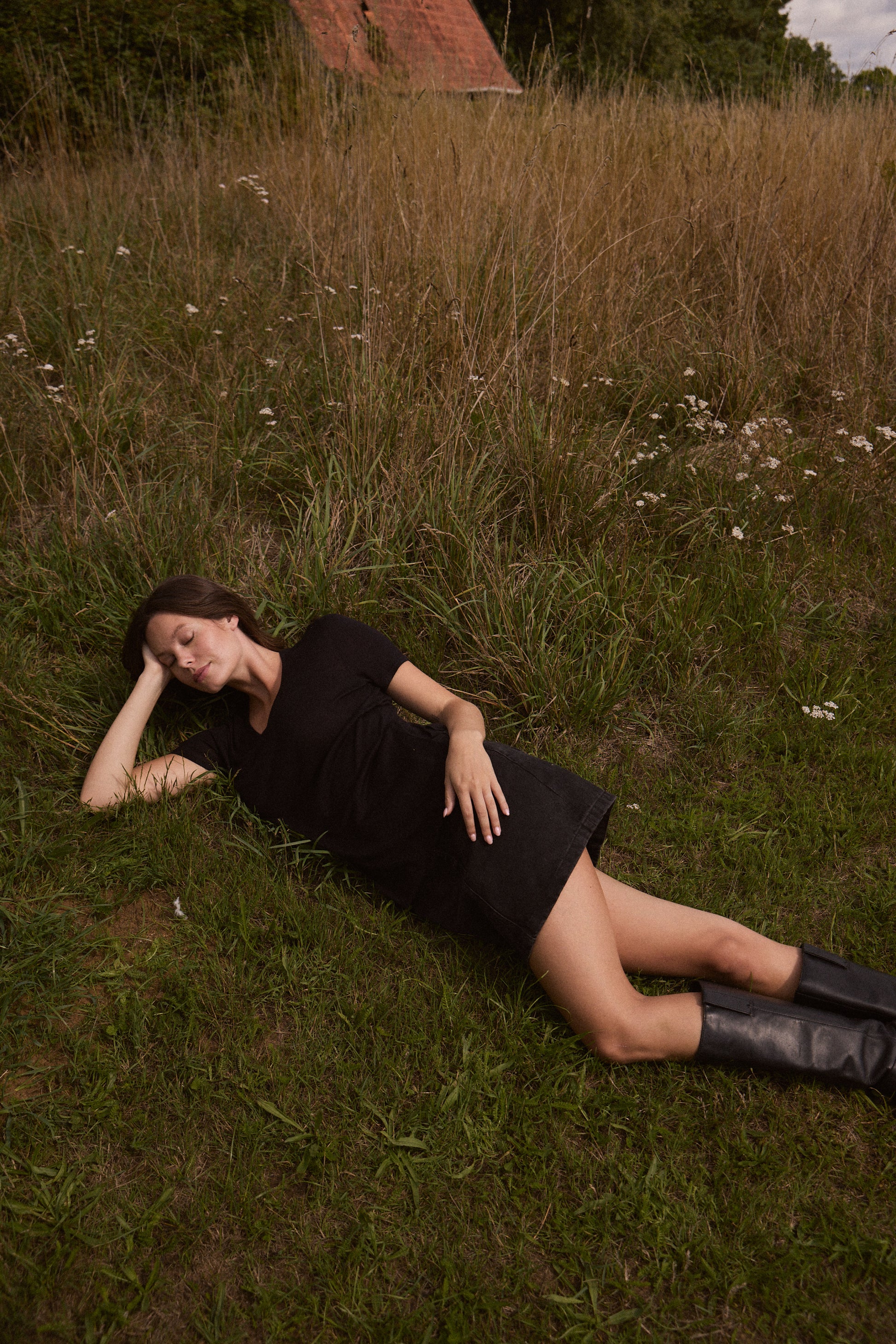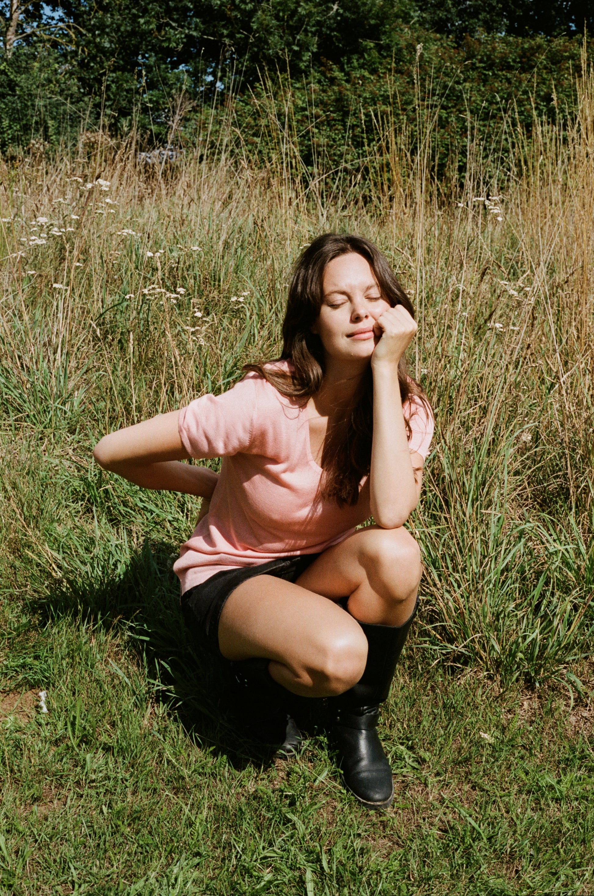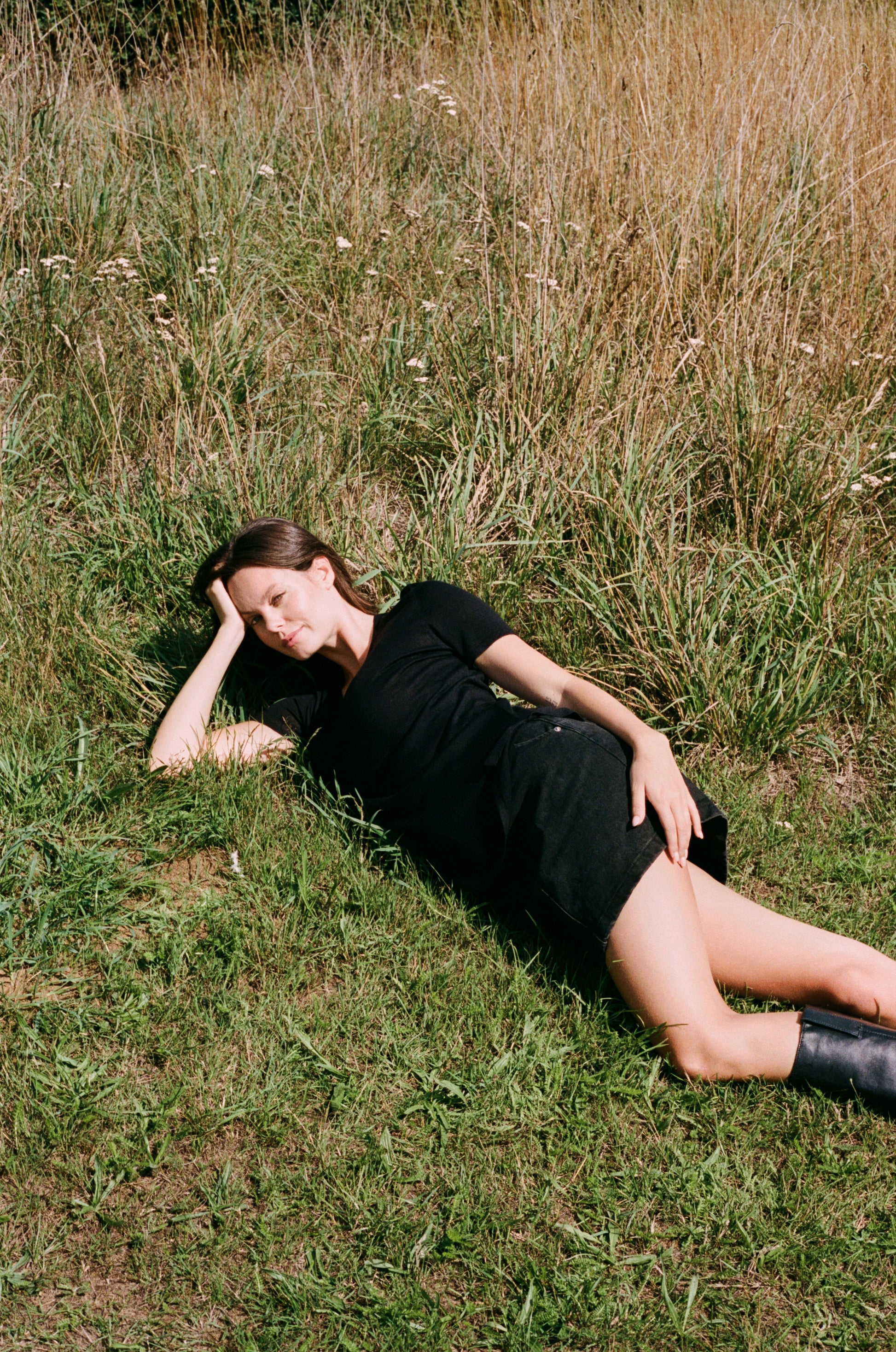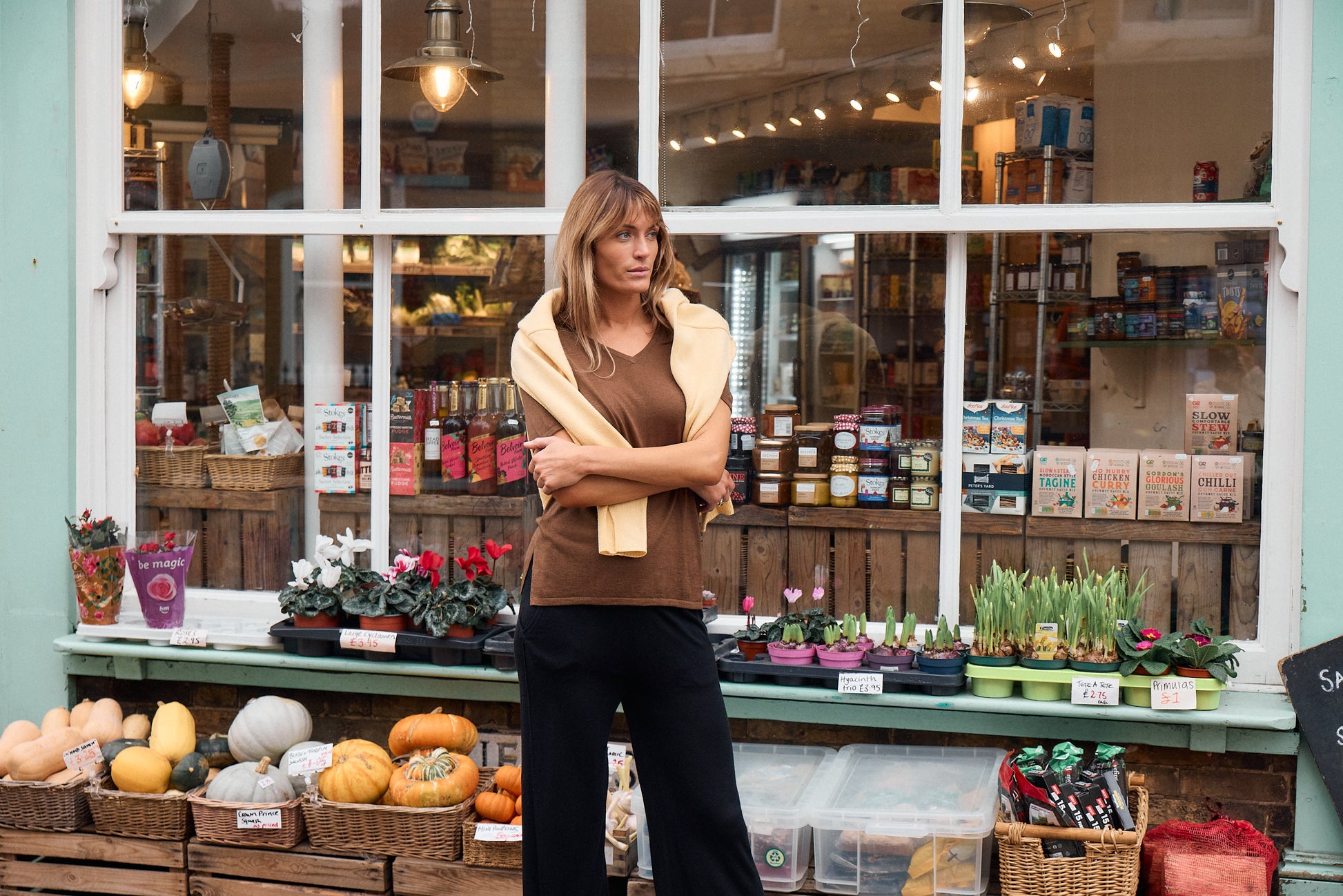 Design: Chocolate, Black, storm blue, candy floss pink, grey and cream. Elegant, super soft T's in a sustainable silk and cashmere blend, great for dressing up with leather pants or jeans. These T's hang loose on the figure and are just the right length on the hip so there is no rising up. They also have a small slit either side of the hip for movement.